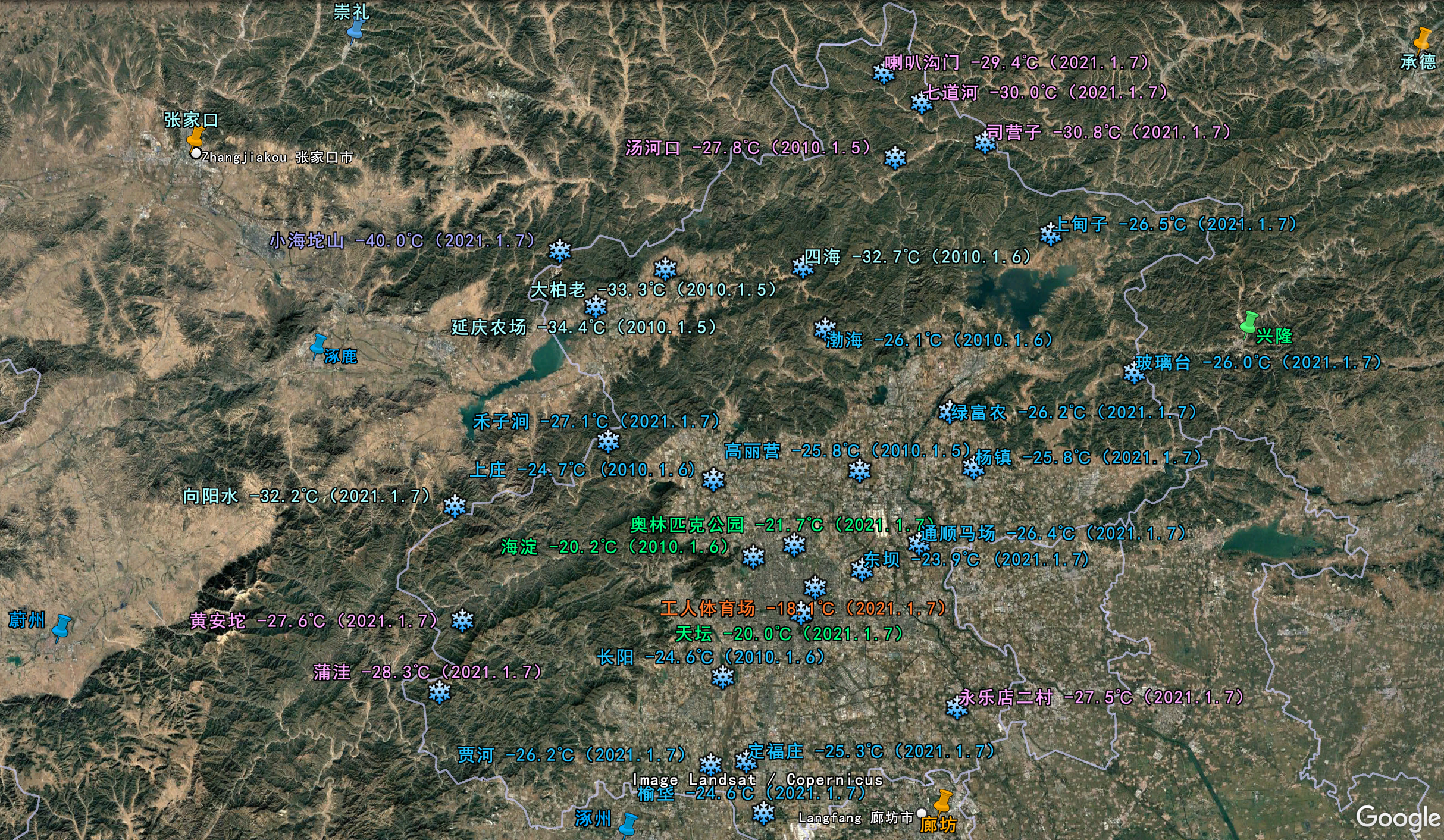 2009冬 海淀 -20.2℃ 78.7cm 四海镇 -32.7℃ 2012冬 延庆 98cm 刘斌堡乡 69cm/d 2021夏 海淀 1103.0mm / 11旬 1255.3mm / 年 2023夏 霞云岭 711.6mm / 48h 房山新村 880.1mm / 84h 张家铺村 1130.6mm / 84h |